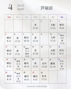 レッスンスケジュール 芦屋店