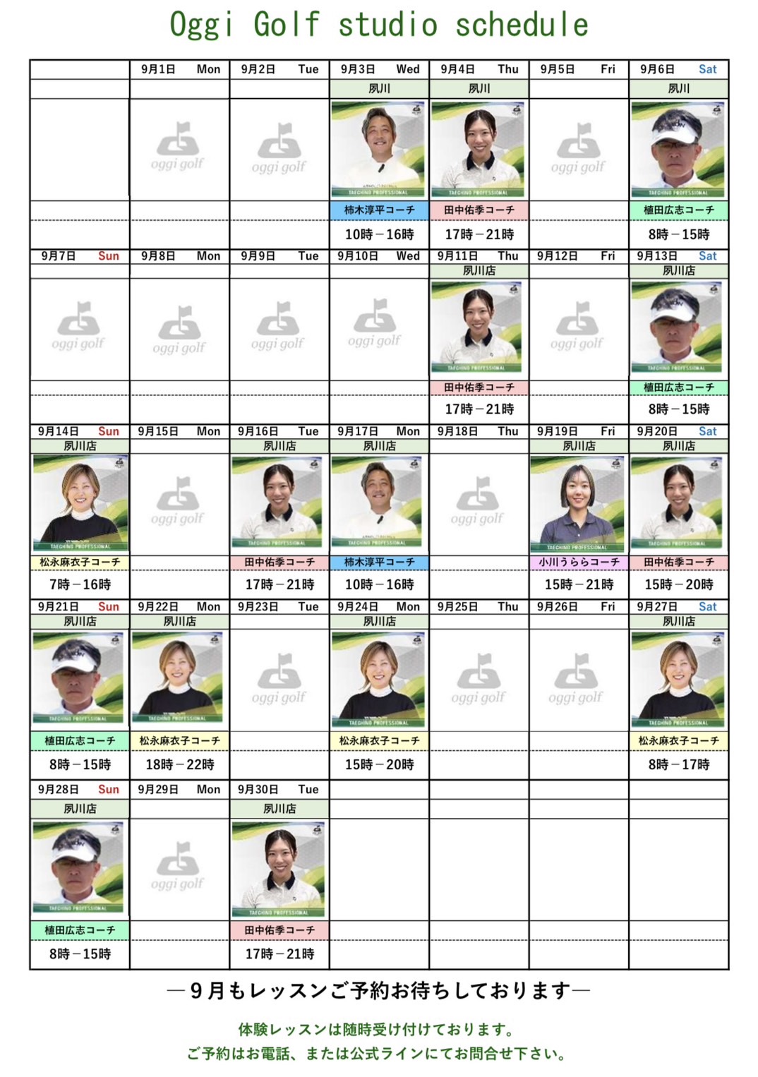 11月レッスンスケジュール 芦屋店